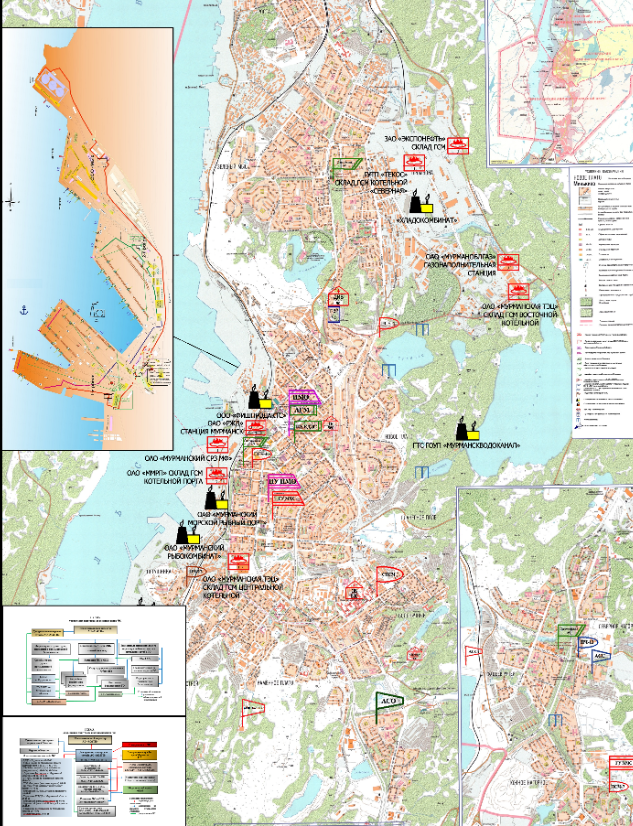Это приложение — самая непростая часть разработки. Вам необходимо запросить в отделе ГО и ЧС карту города с нанесёнными на неё источниками опасности. На ней вы добавляете свою схему территории со всеми необходимыми указателями (ОПО, ЗС ГО, место хранения резервов, НАФГО, НАСФ, ПАСФ, ближайшие ПЧ, пункт управления, ДДС, границы зон ЧС — если у вас есть ОПО, берите из паспортов и планов на ОПО, если ОПО нет, границы не указываются и т.д.). Если город вам не предоставляет карту, берите схему своей организации и работайте только с ней.